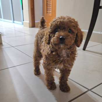 The Mini Aussiedoodle puppy is a crossbreed dog that is a mix of the Mini Australian Shepherd and the Mini Poodle. The Mini Aussiedoodle is an excellent family pet that loves playing with kids and other pets in the household. These dogs also have an easy temperament, which makes them great for first-time puppy owners or those looking for a low-maintenance pet. Mini Aussiedoodles are small, energetic dogs that do well with active owners. Browse our available puppies and reserve a Mini Aussiedoodle at Puppy Love PR today.